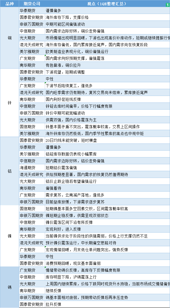 汇通财经APP讯——期货公司观点汇总一张图:2月22日有色系(铜、锌、铝、镍、锡等)