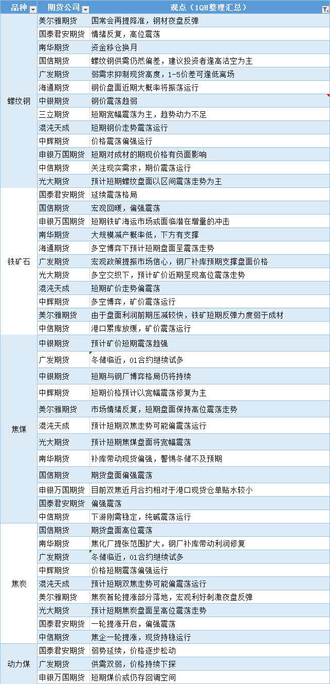 期货公司观点汇总一张图:11月24日黑色系(螺纹钢、焦煤、焦炭、铁矿石、动力煤等)
