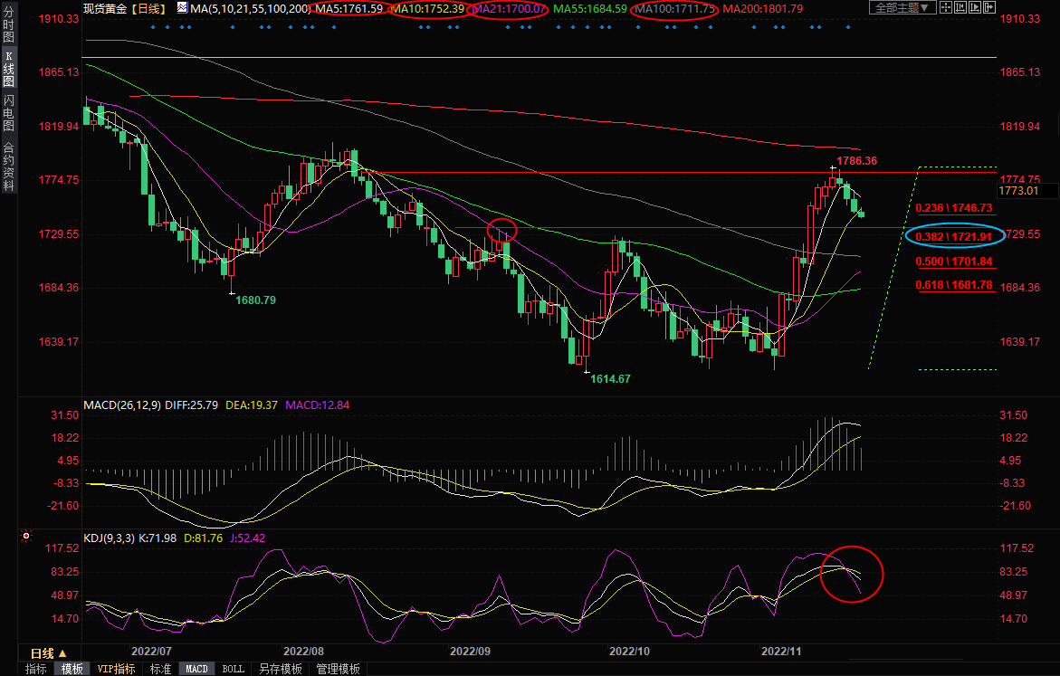周一(11月21日)亚洲时段,现货黄金震荡走弱,一度创逾一周新低至1743.59美元/盎司,上周多位美联储官员发表鹰派讲话,甚至有官员了肯定了12月份再度加息75个基点的可能性,再加上美国10月份零售...