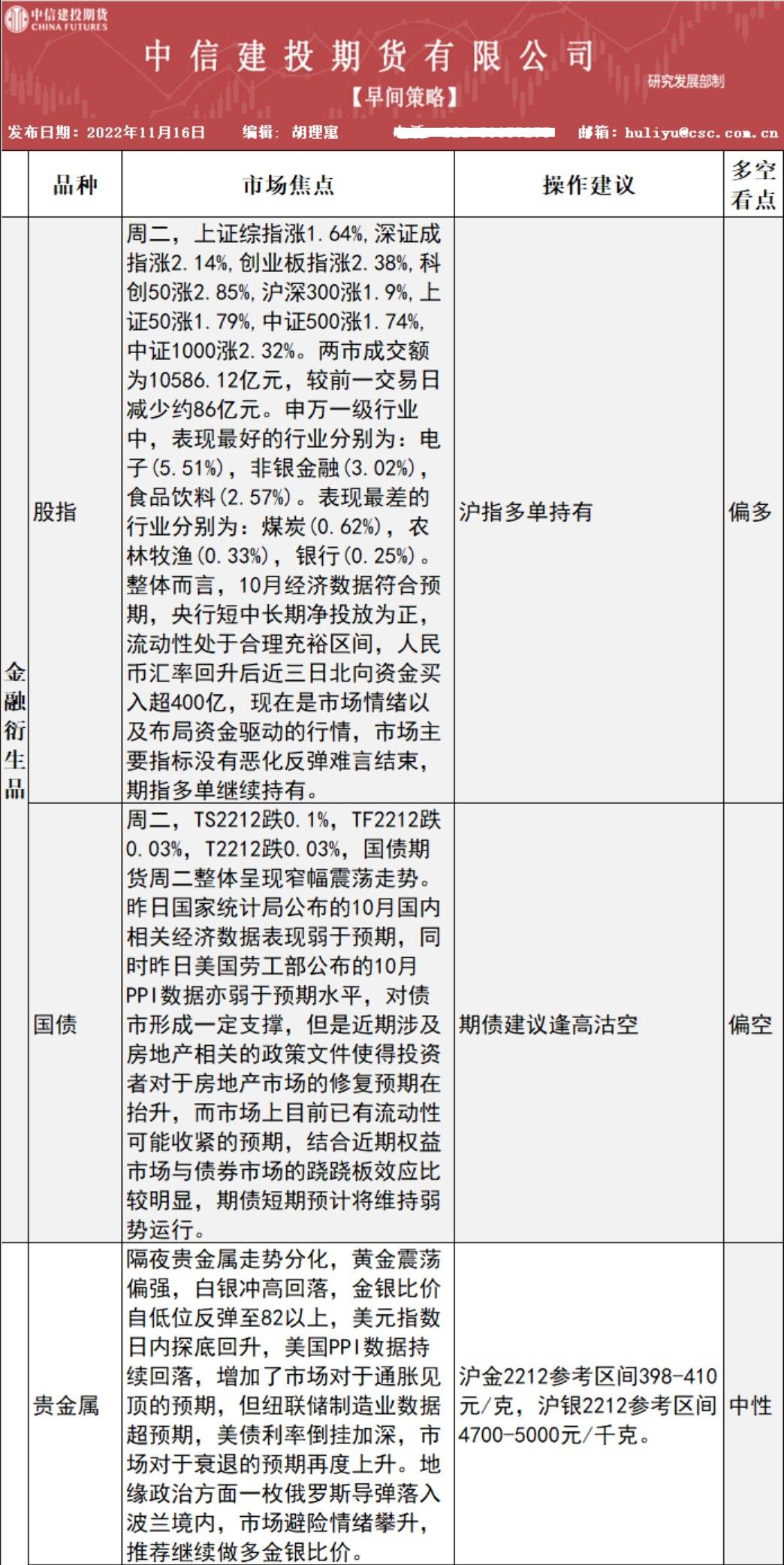 股指:事件向好,股指多单轻仓;在国内防疫防控方面,卫健委发布优化防疫防控的措施,给地方政府更加精确的“防控标准”,大大减少地方政府“层层加码”的做法,市场对经济活动表现乐观。旅游、餐饮等受到影响大的行...