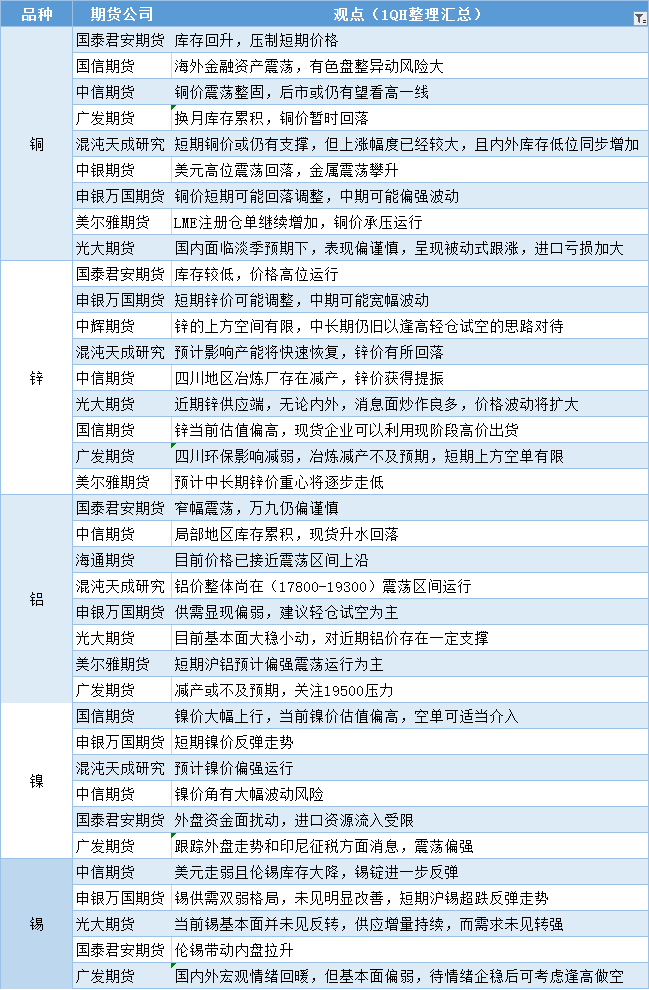 期货公司观点汇总一张图:11月16日有色系(铜、锌、铝、镍、锡等)