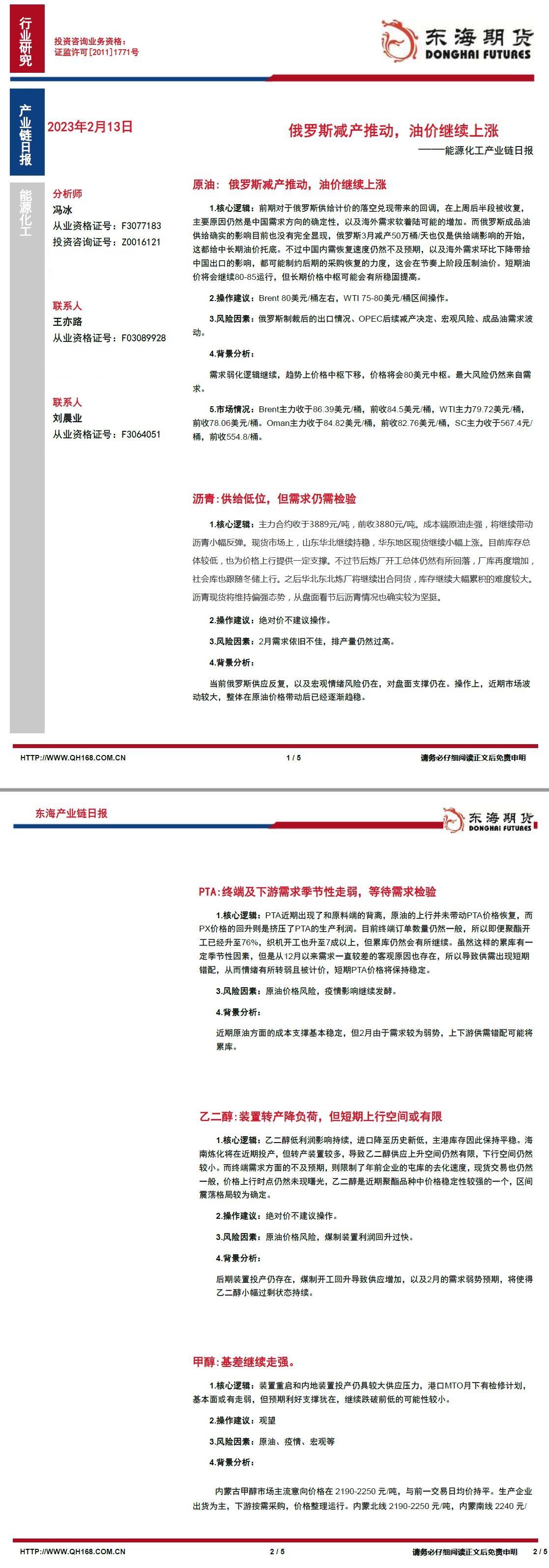 汇通财经APP讯——原油:俄罗斯减产推动,油价继续上涨沥青:供给低位,但需求仍需检验PTA:终端及下游需求季节性走弱,等待需求检验乙二醇:装置转产降负荷,但短期上行空间或有限甲醇:基差继续走强L:价格...