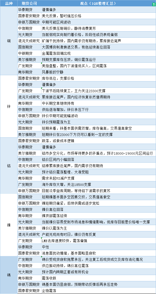 汇通财经APP讯——期货公司观点汇总一张图:2月13日有色系(铜、锌、铝、镍、锡等)
