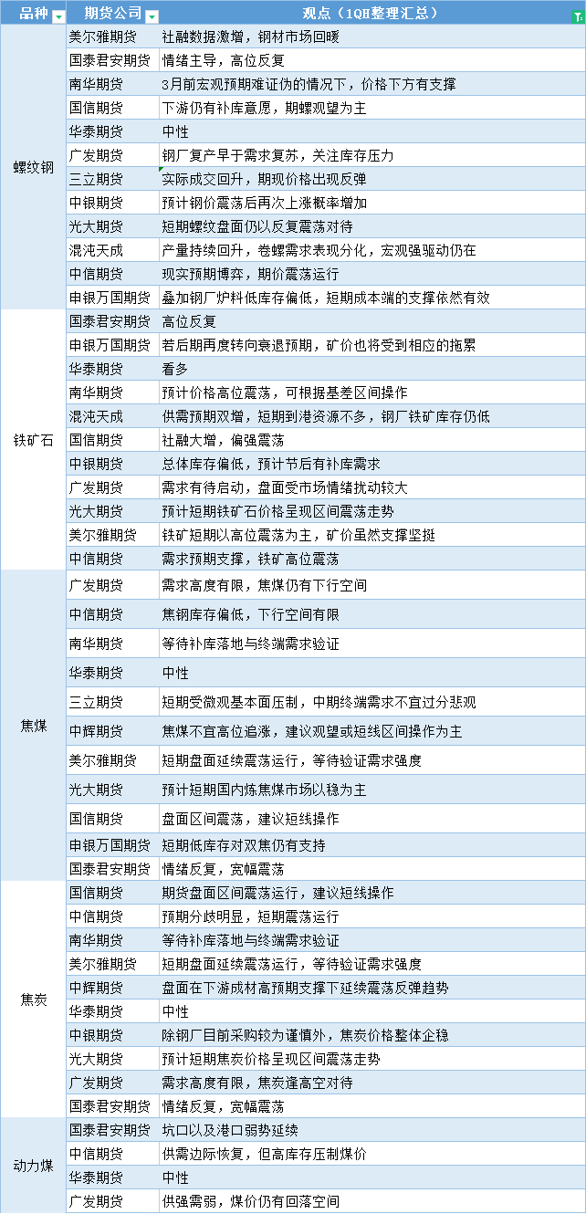 汇通财经APP讯——期货公司观点汇总一张图:2月13日黑色系(螺纹钢、焦煤、焦炭、铁矿石、动力煤等)