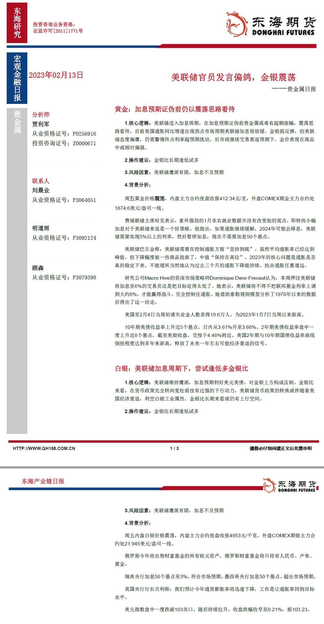 汇通财经APP讯——黄金核心逻辑:美联储进入加息周期,在加息预期证伪前贵金属或难有超额涨幅,震荡思路看待。目前美国通胀同比增速出现拐点市场预期美联储加息将放缓金银弱反弹,但美联储态度偏鹰,仍需警惕终点...