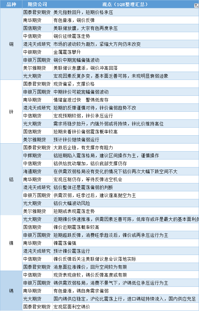 期货公司观点汇总一张图:11月3日有色系(铜、锌、铝、镍、锡等)