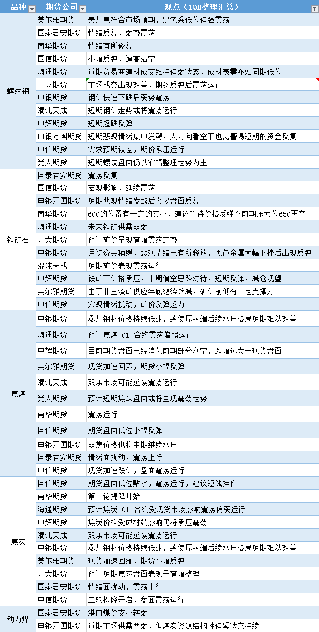期货公司观点汇总一张图:11月3日黑色系(螺纹钢、焦煤、焦炭、铁矿石、动力煤等)