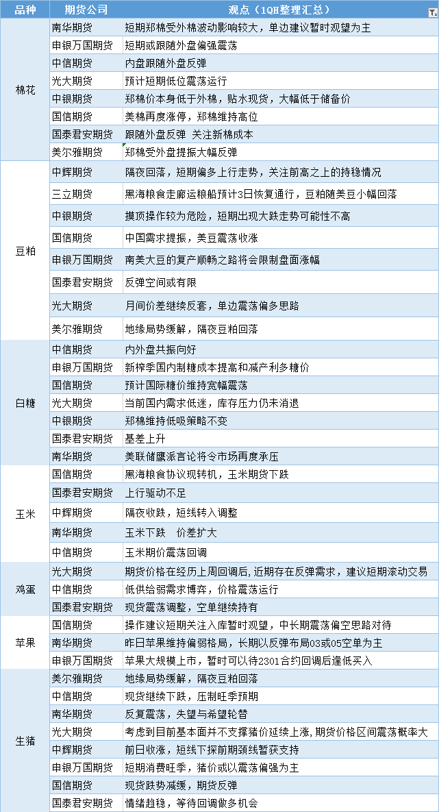 期货公司观点汇总一张图:11月3日农产品(棉花、豆粕、白糖、玉米、鸡蛋、生猪等)