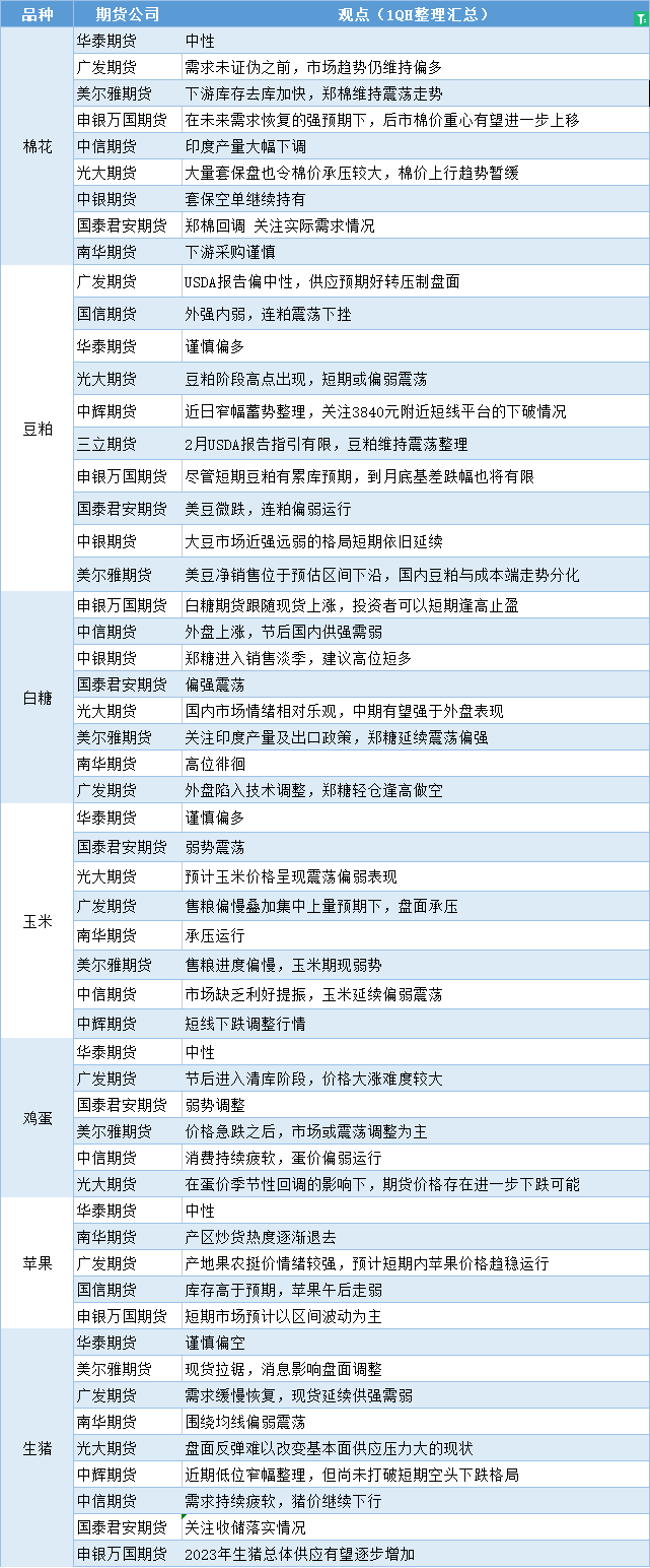 汇通财经APP讯——期货公司观点汇总一张图:2月10日农产品(棉花、豆粕、白糖、玉米、鸡蛋、生猪等)