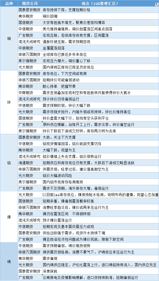 期货公司观点汇总一张图:11月1日有色系(铜、锌、铝、镍、锡等)