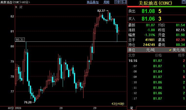 周四(9月29日),国际油价跌逾1%,美元走强抑制了美元计价大宗商品需求,而对全球经济不景气的担忧使市场情绪蒙上阴影。但NYMEX原油若不能尽快重新跌破80.31美元,油价短期内快速下跌可能不大。北京...