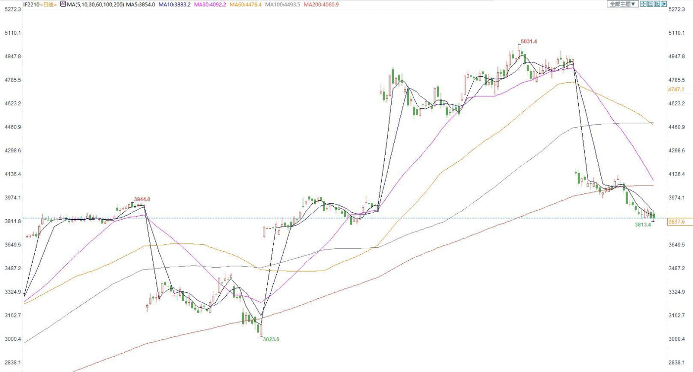 股指期货:上证综指创新低,外资逆市买入 【今日行情】四大期指全线收跌。IH2210收盘价为2611.8,收跌0.18%;IF2210收盘价为3837.6,收跌0.12%;IC2210收盘价为5790....
