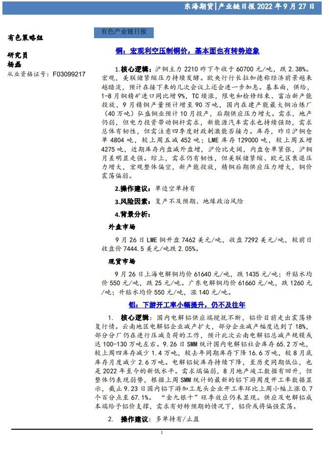 期货公司观点汇总一张图:9月27日有色系(铜、锌、铝、镍、锡等)