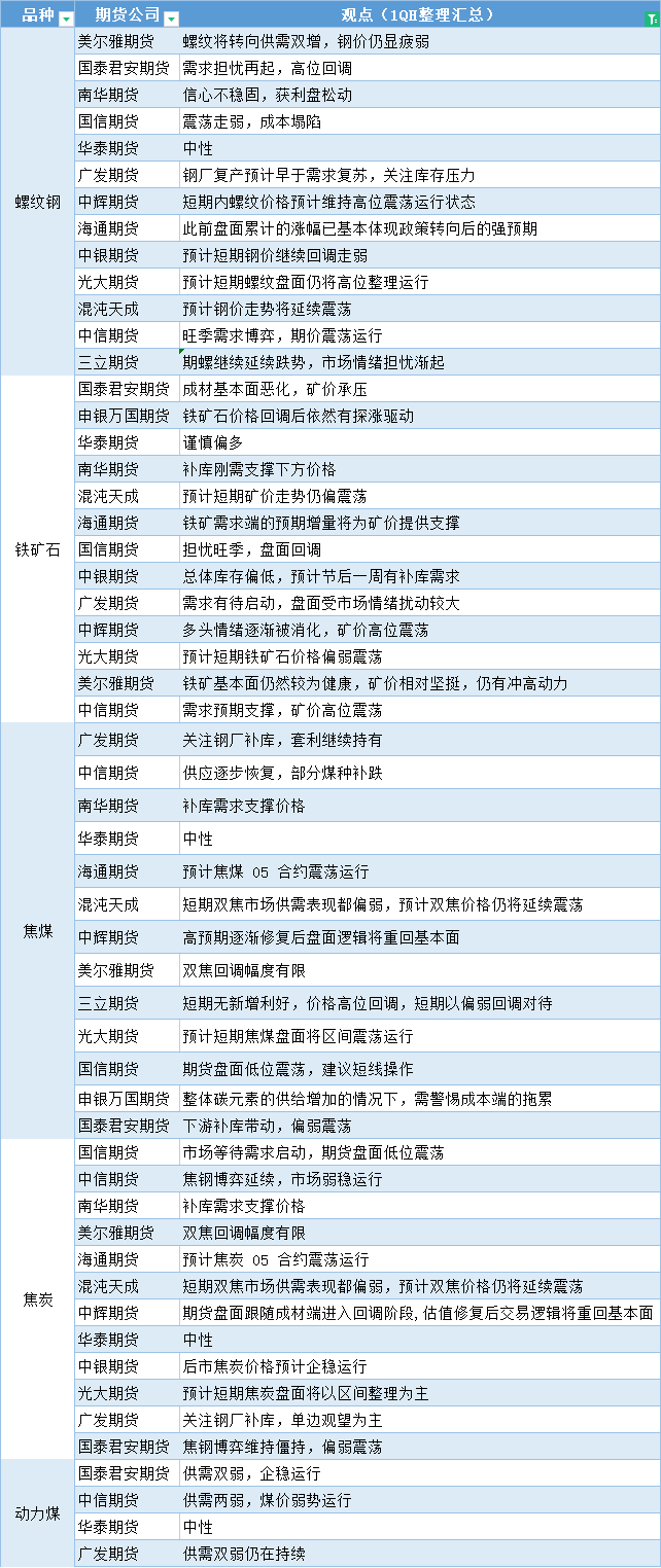 汇通财经APP讯——期货公司观点汇总一张图:2月3日黑色系(螺纹钢、焦煤、焦炭、铁矿石、动力煤等)