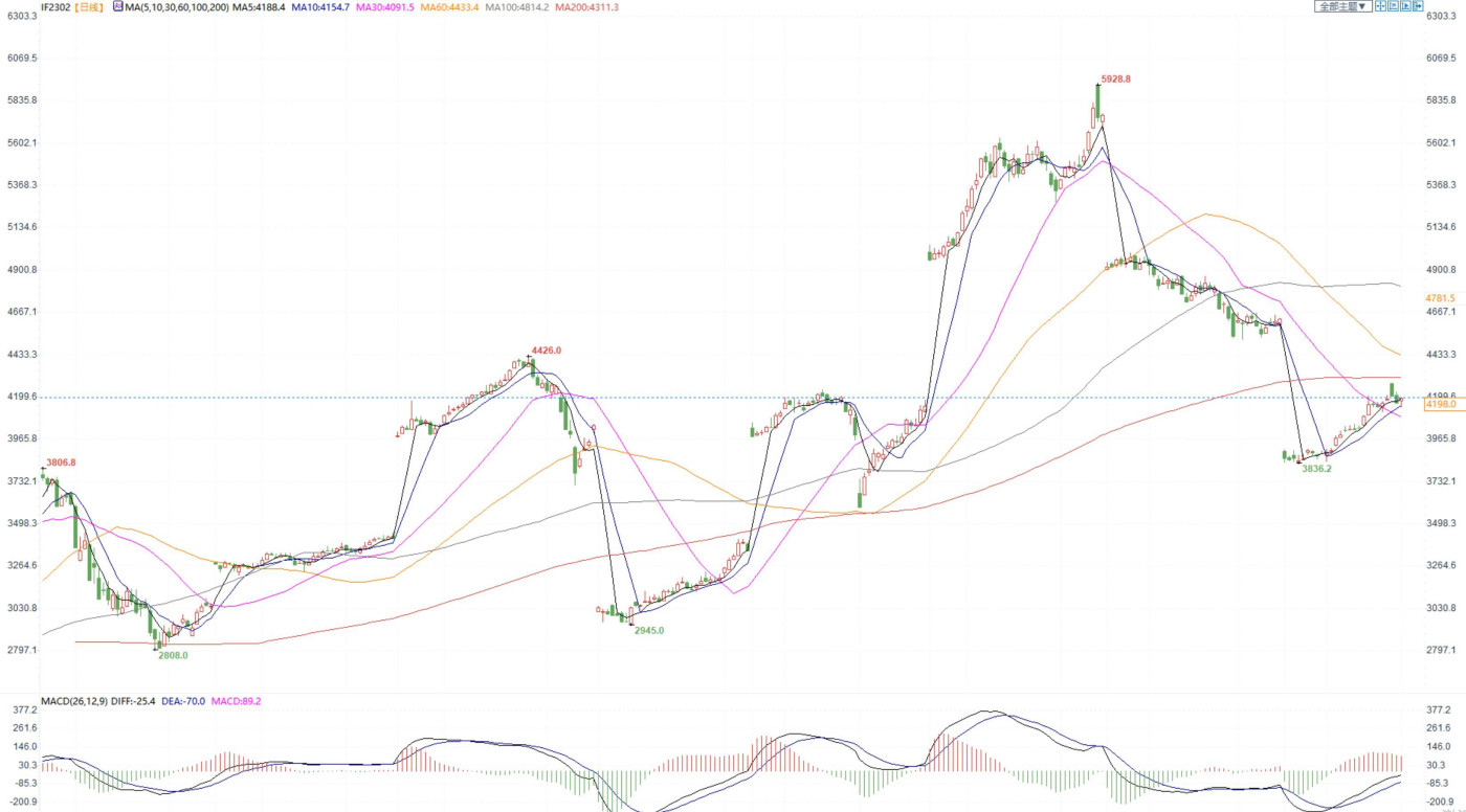 汇通财经APP讯——股指期货:成交额重回万亿,期指全线收涨 【今日涨跌】四大期指全线收涨。IH2302收盘价为2827.8,收涨0.26%;IF2302收盘价为4198.0,收涨0.57%;IC230...