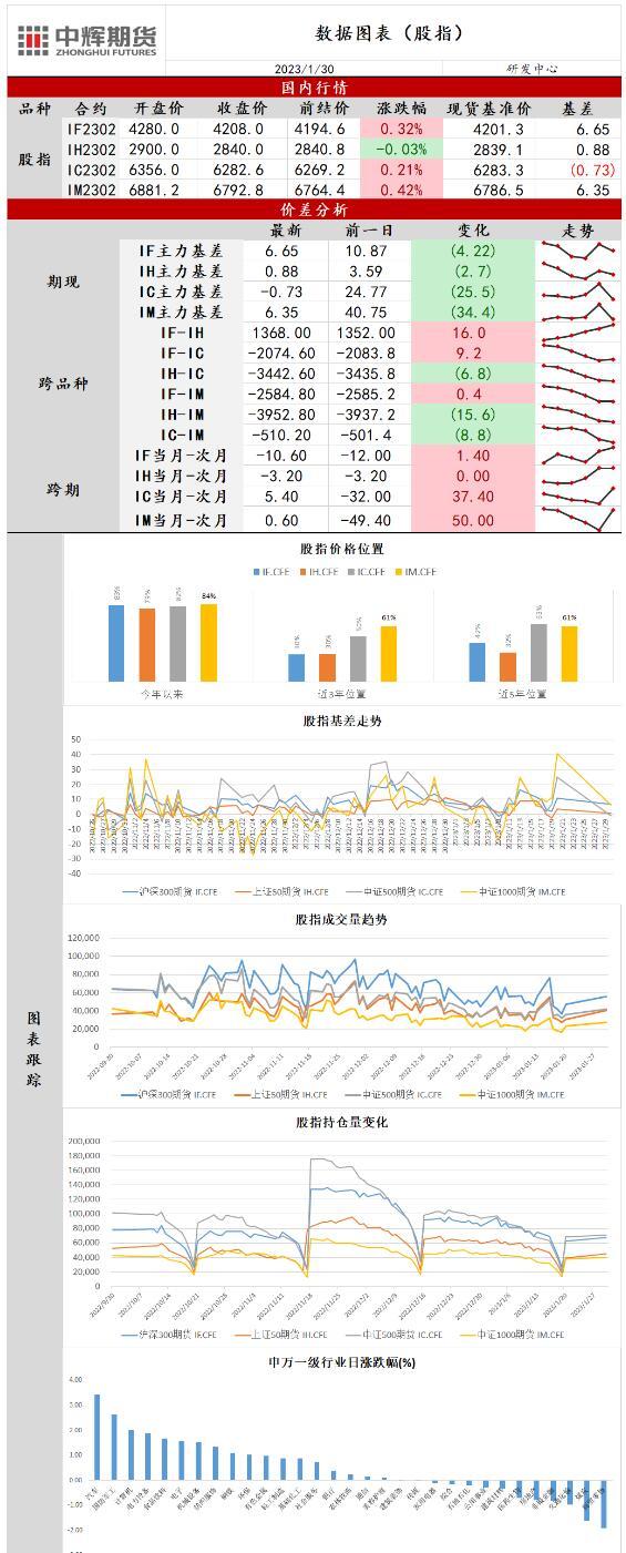 汇通财经APP讯——股指期货:市场表现分化,IM强于IH 【今日涨跌】四大期指涨跌互现。IH2302收盘价为2819.6,收跌0.85%;IF2301收盘价为4169.6,收跌0.98%;IC2301...