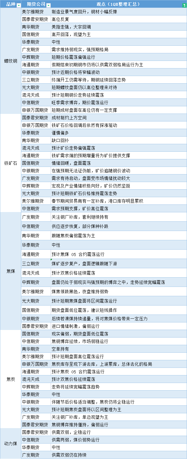 汇通财经APP讯——期货公司观点汇总一张图:2月1日黑色系(螺纹钢、焦煤、焦炭、铁矿石、动力煤等)