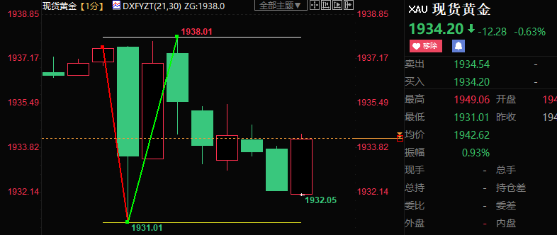 汇通财经APP讯——周三(1月25日),现货黄金下跌,脱离隔夜创下的去年4月下旬以来新高1942.39美元/盎司,因部分投资者在美国第四季度GDP数据公布前平仓,美元指数企稳?;滞蹲收咚坪醵悦懒?..
