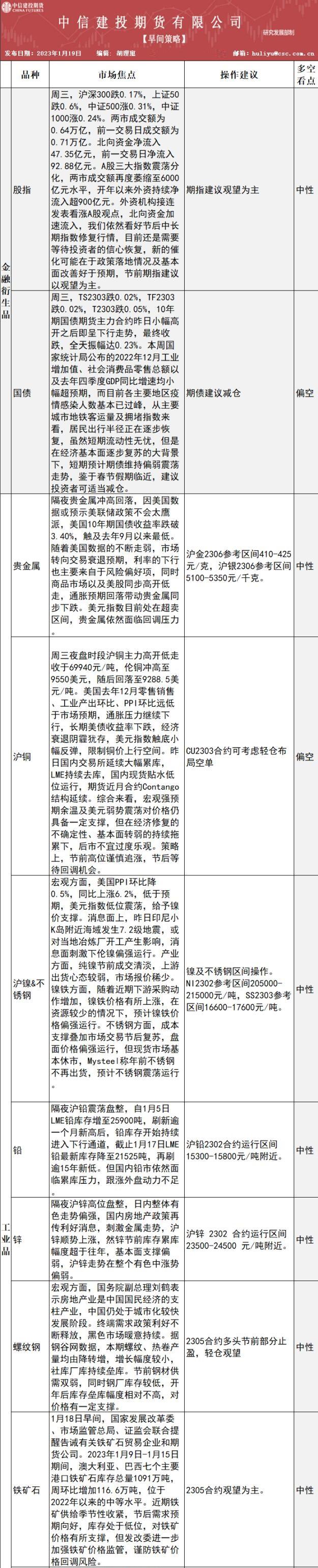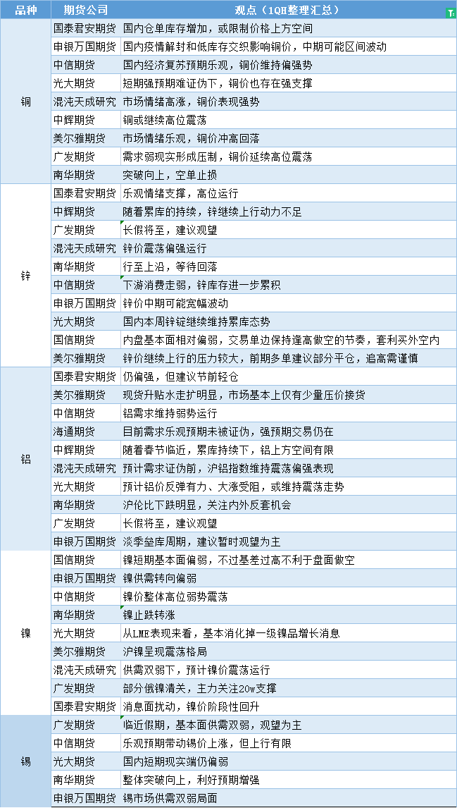 汇通财经APP讯——期货公司观点汇总一张图:1月19日有色系(铜、锌、铝、镍、锡等)