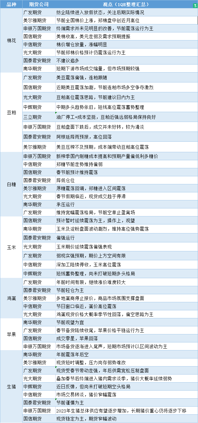 汇通财经APP讯——期货公司观点汇总一张图:1月19日农产品(棉花、豆粕、白糖、玉米、鸡蛋、生猪等)