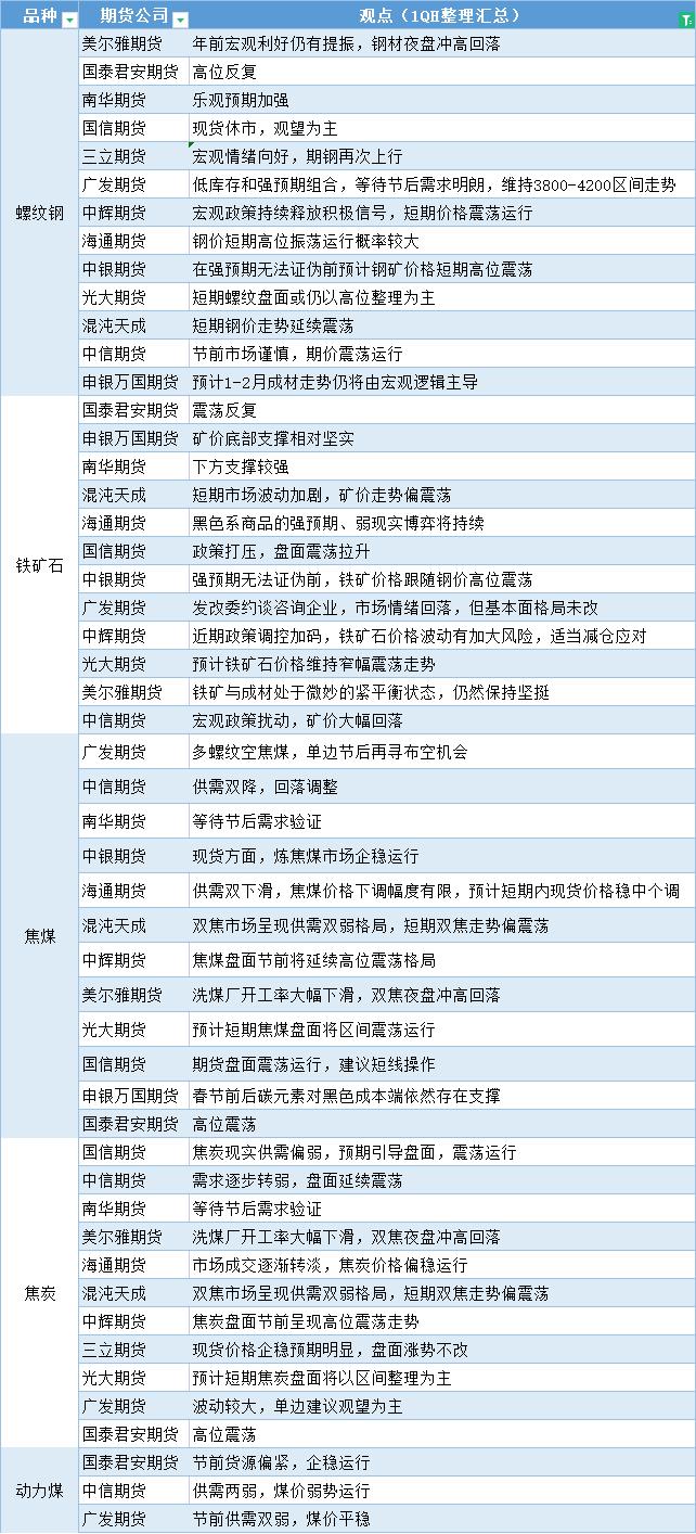 汇通财经APP讯——期货公司观点汇总一张图:1月19日黑色系(螺纹钢、焦煤、焦炭、铁矿石、动力煤等)