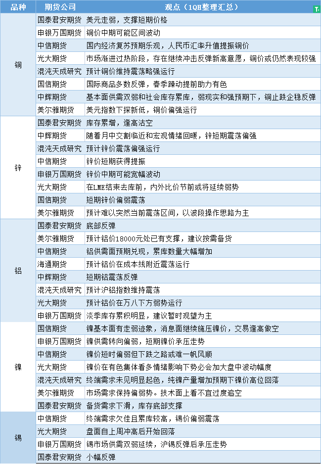 汇通财经APP讯——期货公司观点汇总一张图:1月10日有色系(铜、锌、铝、镍、锡等)