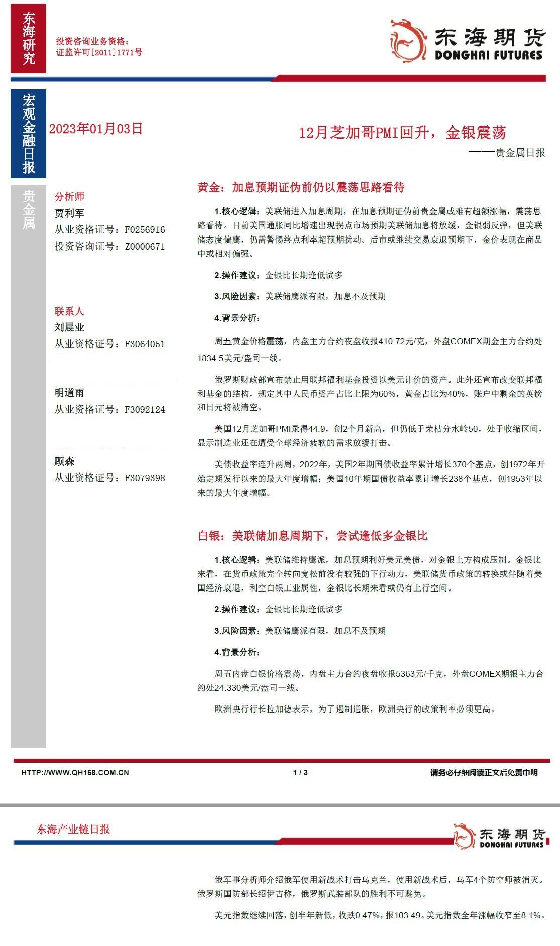 汇通财经APP讯——黄金核心逻辑:美联储进入加息周期,在加息预期证伪前贵金属或难有超额涨幅,震荡思路看待。目前美国通胀同比增速出现拐点市场预期美联储加息将放缓金银弱反弹,但美联储态度偏鹰,仍需警惕终点...