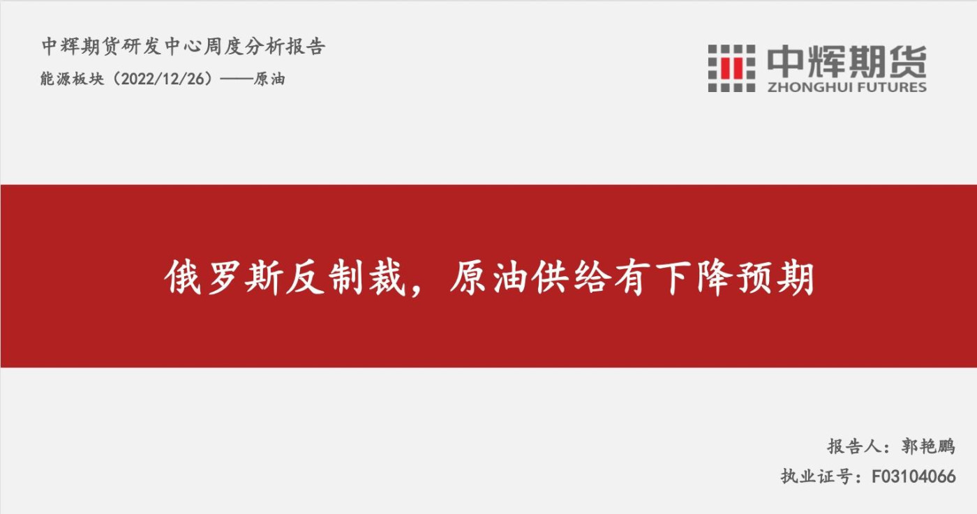 汇通财经APP讯——中辉期货发布原油周报,称俄罗斯反制裁,原油供给有下降预期,需关注全球原油需求变化。中辉期货公司授权文本由“专注期货开户交易及专业行情分析资讯网站”:【一期货 www.1qh.cn】...