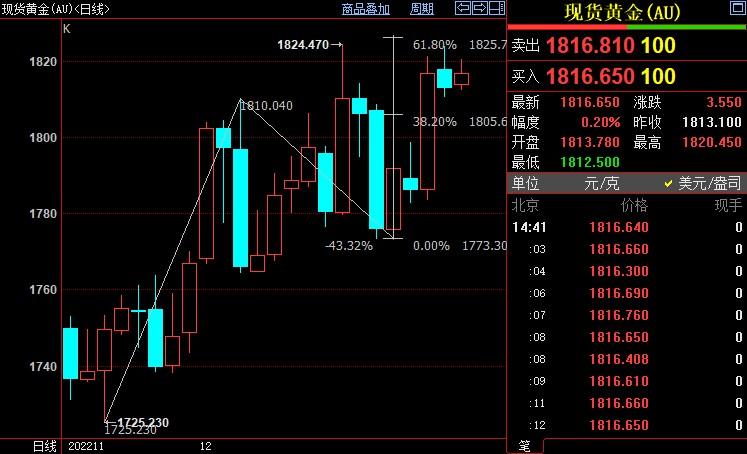 汇通财经APP讯——周四(12月22日),国际金价基本持稳,尽管美元在假期清淡交易中走软,市场参与者等待新的经济数据以寻找进一步方向。金价后市料升破1826美元。北京时间14:52,现货黄金上浮0.0...