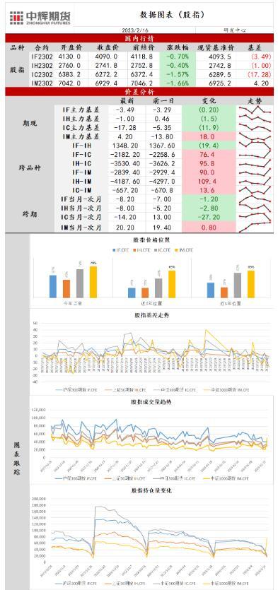 汇通财经APP讯——股指期货:市场午后加速跳水,上证综指冲刺3300点失败 【今日涨跌】四大期指全线收跌。IH2302收盘价为2741.8,收跌0.40%;IF2302收盘价为4090,收跌0.70%...