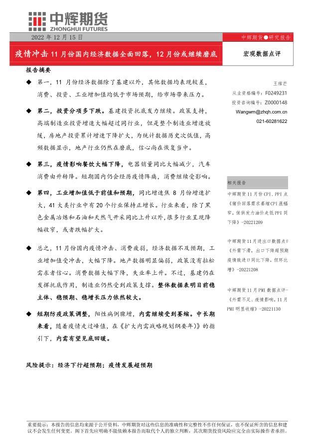 汇通财经APP讯——报告摘要第一,11 月份经济数据除了基建以外,其他数据均表现较差,消费、投资、工业增加值均低于市场预期,给市场带来压力。第二, 投资分项 多下跌 ?;ㄍ蹲释械追⒘绦?。政策支持,...