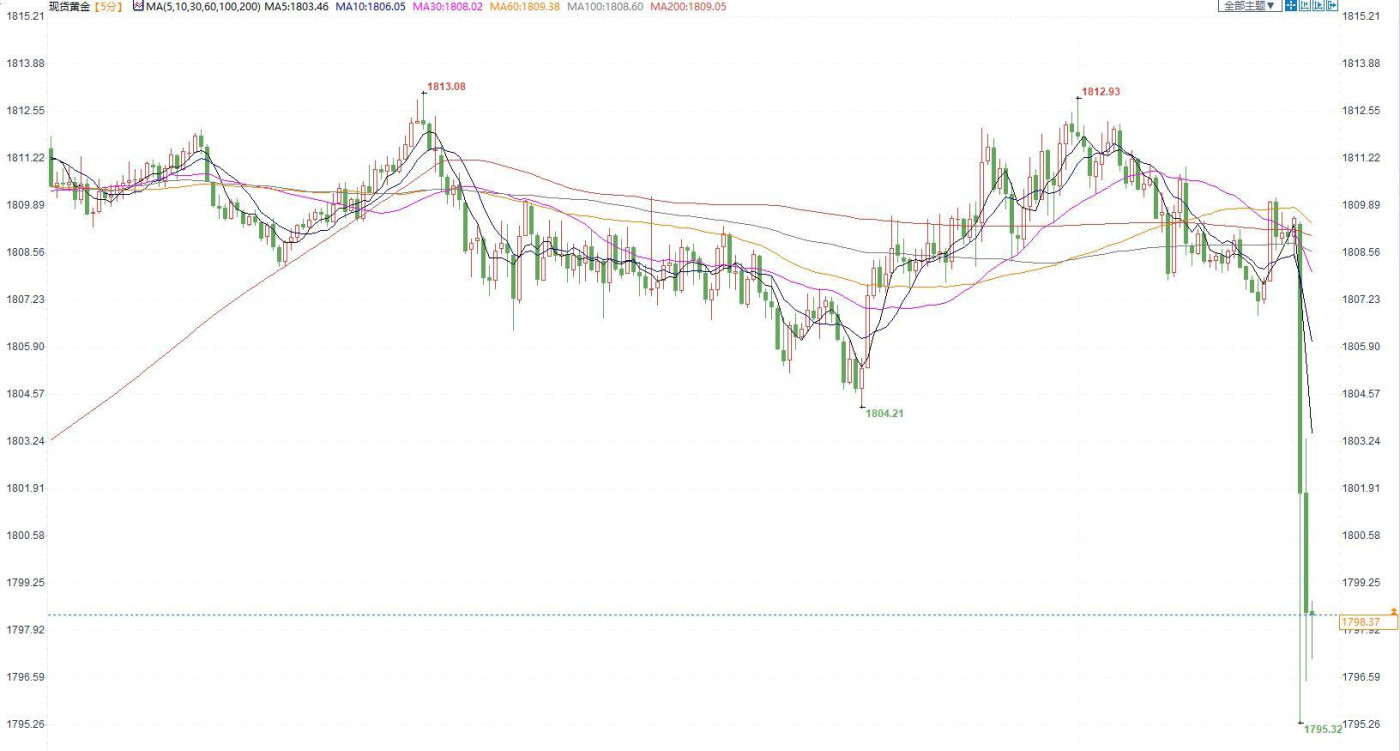 汇通财经APP讯——周四(12月15日),国际金价下跌近1%,进一步远离本周创下的6月底以来新高1824.39美元/盎司,因美联储主席鲍威尔隔夜表示明年将进一步加息。金价后市下看1775美元。北京时间...