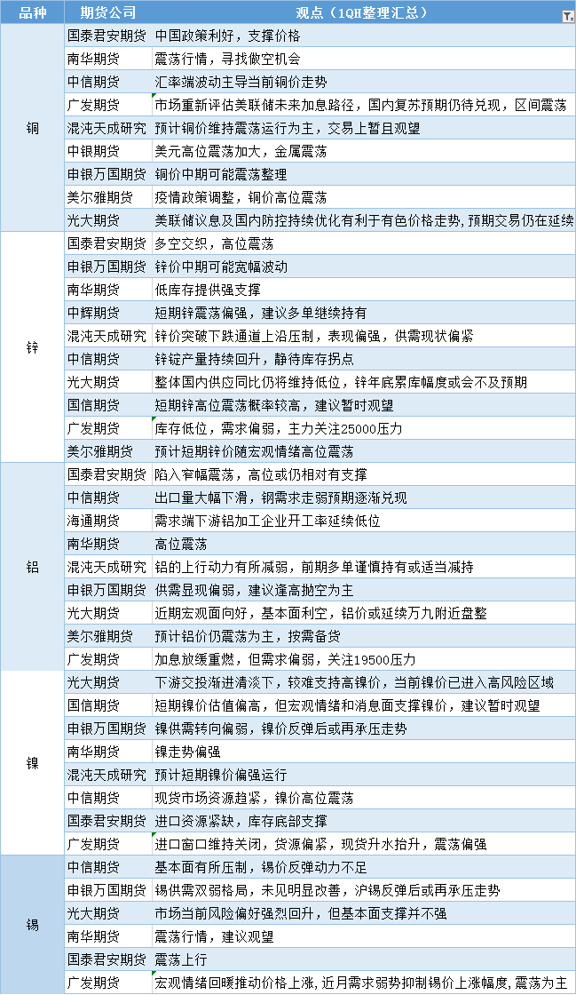 汇通财经APP讯——期货公司观点汇总一张图:12月8日有色系(铜、锌、铝、镍、锡等)