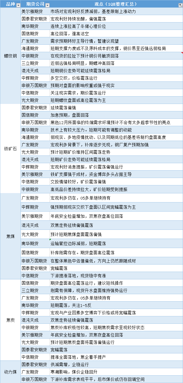汇通财经APP讯——期货公司观点汇总一张图:12月6日黑色系(螺纹钢、焦煤、焦炭、铁矿石、动力煤等)