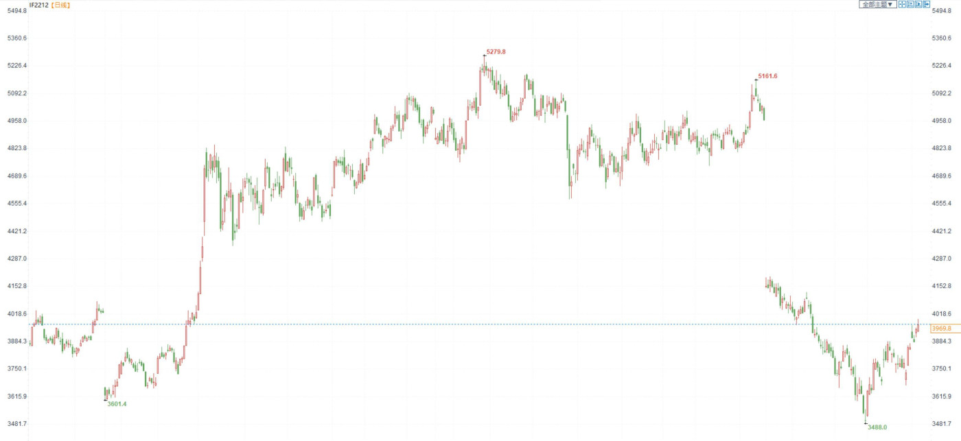 汇通财经APP讯——股指期货:量能重回万亿之下,上证综指守住3200点 【今日涨跌】四大期指全线收涨。IH2212收盘价为2685,收涨0.51%;IF2212收盘价为3969.8,收涨0.67%;I...