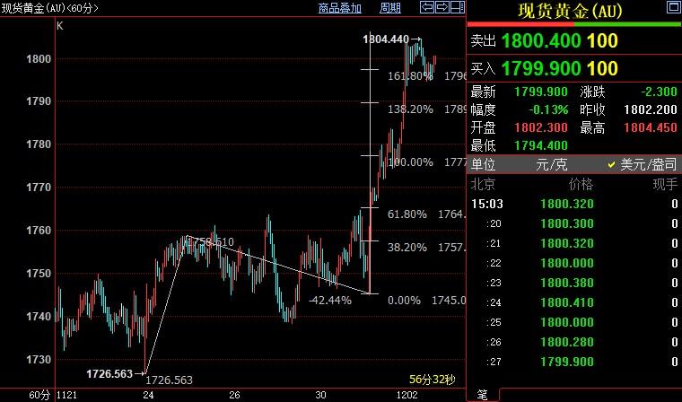 汇通财经APP讯——周五(12月2日)亚洲时段,现货黄金震荡微跌,目前交投于1798.88附近,一方面,美元指数在近五个月低点附近获得一些支撑并小幅反弹,令金价承压,另一方面,金价在8月份高点1807...