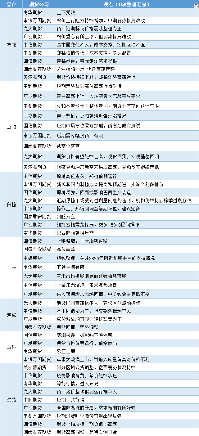汇通财经APP讯——期货公司观点汇总一张图:12月1日农产品(棉花、豆粕、白糖、玉米、鸡蛋、生猪等)