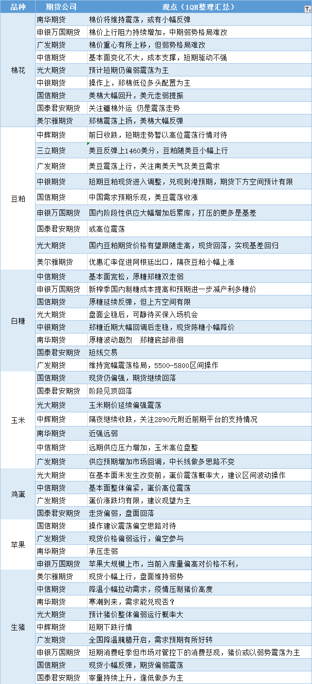汇通财经APP讯——期货公司观点汇总一张图:11月30日农产品(棉花、豆粕、白糖、玉米、鸡蛋、生猪等)