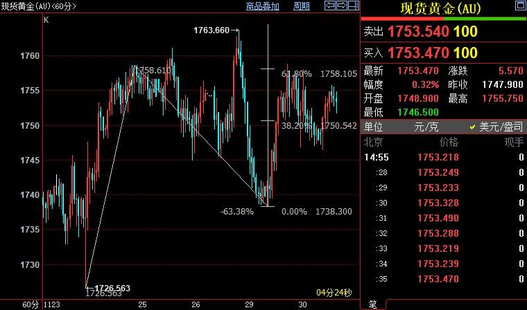 汇通财经APP讯——现货黄金价格周二(11月29日)走高,试图收复一天前的失地??碳?745.36美元/盎司,最高价1758.82美元/盎司,最低价1739.44美元/盎司,收盘价1754.97美元...
