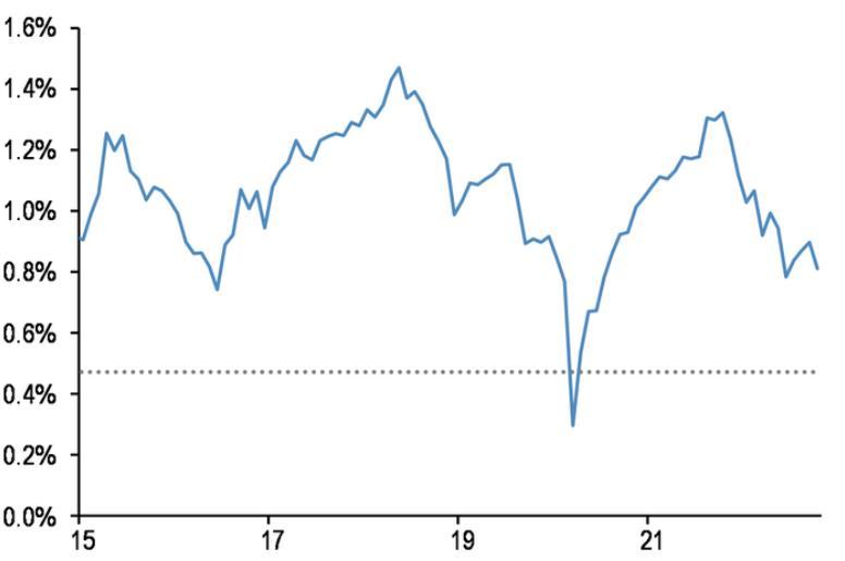 这些策略师表示,在与客户的讨论中,这种情况被广泛认为是世界末日的情况。他们说:“毕竟,上一次联邦基金利率达到6.5%是在2000年,当时的政策利率水平给风险市场带来了非常严重的损失?!?