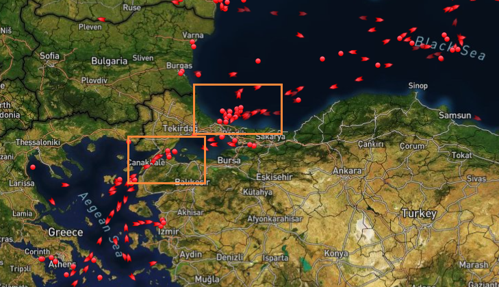 具体数据显示,在黑海等待通过博斯普鲁斯海峡进入马尔马拉海的邮轮数量较昨日增加了9艘至16艘;而在马尔马拉海等待通过达达尼尔海峡进入地中海的油轮数量从昨日的12艘减少至9艘。