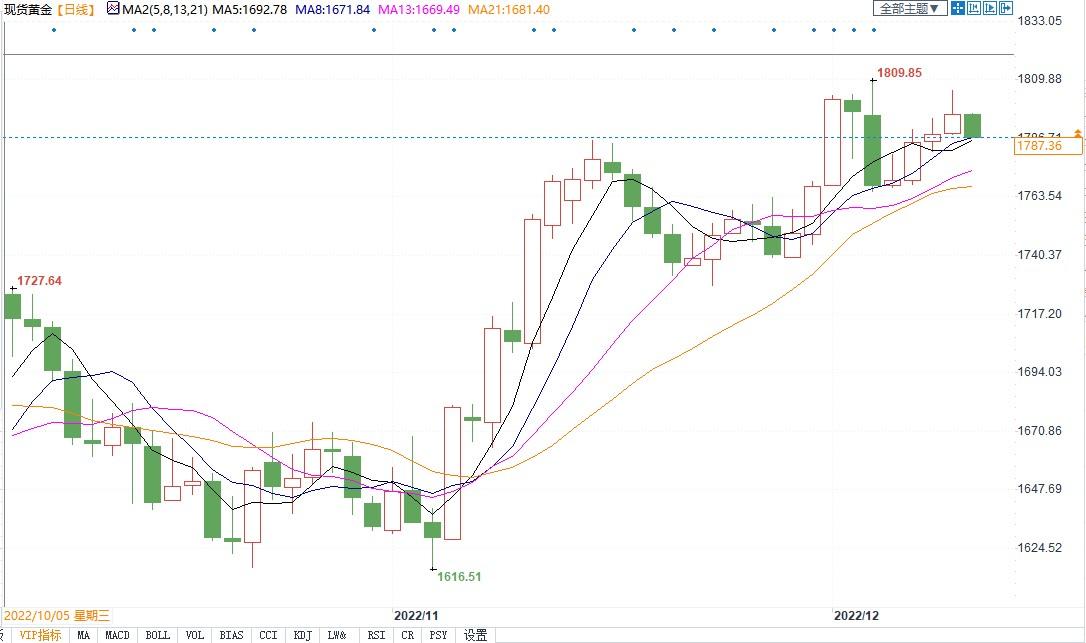 OANDA高级市场分析师莫亚称:“预计11月CPI将朝着正确的方向发展,但它不会像许多人预期的那样迅速下降。我部分看空本周黄金的走势。美联储加息后,金价可能会出现震荡,但最终会走高。下周黄金市场可能下滑,但这将是短暂的?!?br>