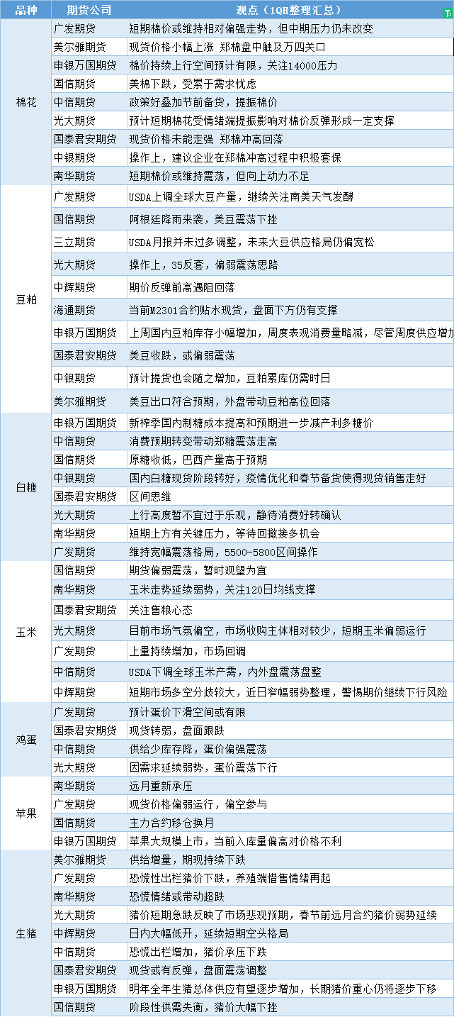 标题:期货公司观点汇总一张图:12月13日农产品(棉花、豆粕、白糖、玉米、鸡蛋、生猪等)