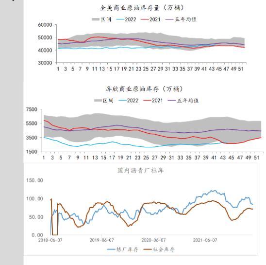 供应端:据美国能源信息署最新数据显示,截止2022年12月05日当周,包括战略储备在内的美国原油库存总量80091.7万桶,比前一周下降728.3万桶;美国商业原油库存41389.8万桶,比前一周下降518.6万桶;战略原油库存量38701.9万桶,比上一周下降209.7万桶;美国汽油库存总量21908.7万桶,比前一周上升531.9万桶。商业原油库存比去年同期低4.38%,比过去五年同期低8.41%;汽油库存比去年同期低0.10%,比过去五年同期低约2.68%;馏分油库存比去年同期低6.16%,比过去五年同期低7.80%。