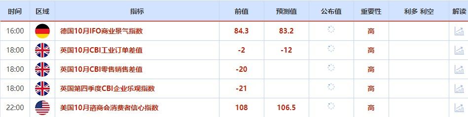 ①英国经纪商Monex?Europe称,欧洲央行可能在周四的会议上再次加息75个基点,但欧元的涨幅将有限。Monex?Europe的分析师表示,这是因为市场已经消化了75个基点的加息,而欧洲央行没有动机去改变对12月会议加息50个基点的预期。此外,美联储也可能在11月1日-2日的会议上重申其抗击通胀的承诺;