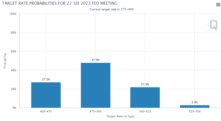 考虑到美联储主席鲍威尔在最后一次公开露面中承认,放慢加息步伐是有意义的,加息50个基点不会带来大的惊喜。如果暗示加息持续时间短于预期,这可能会给金价带来提振。