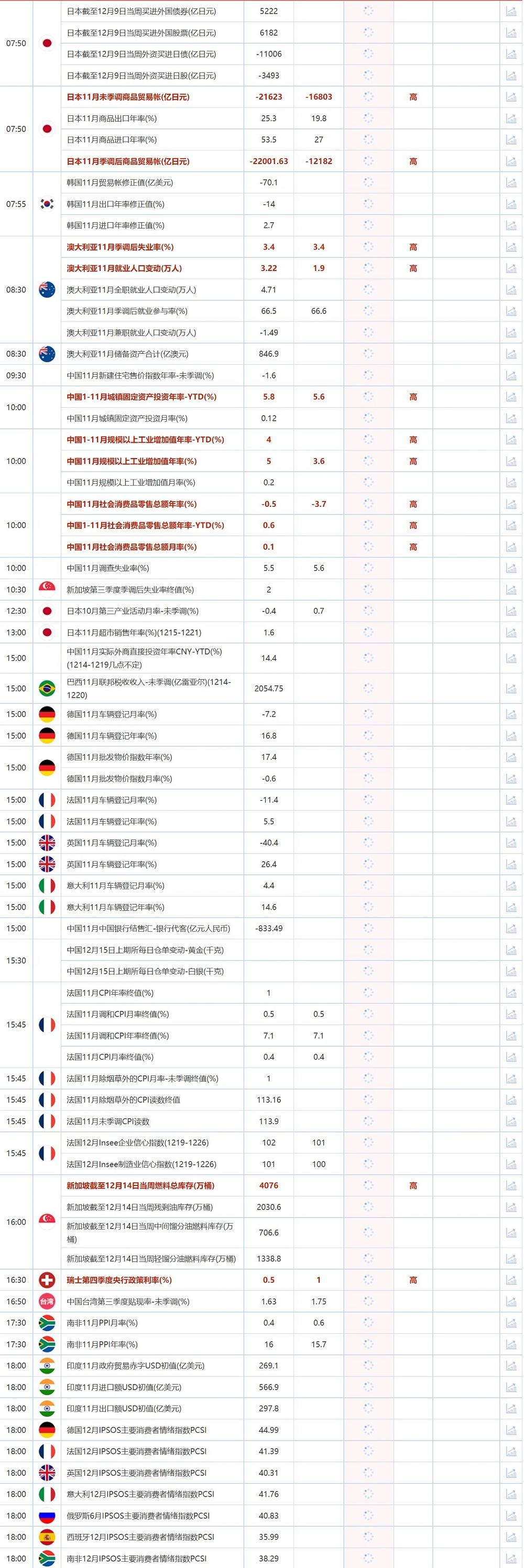 12月15日重点数据和大事件前瞻