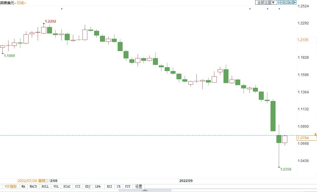 英镑周一在亚洲市场一度下跌4%,至1.0382的历史低点,此前英国新政府上周宣布将实施减税和投资激励措施以提振经济增长。