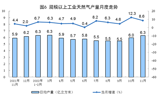 1—11月份,生产天然气1974亿立方米,同比增长6.4%。进口天然气9901万吨,同比下降9.7%。
