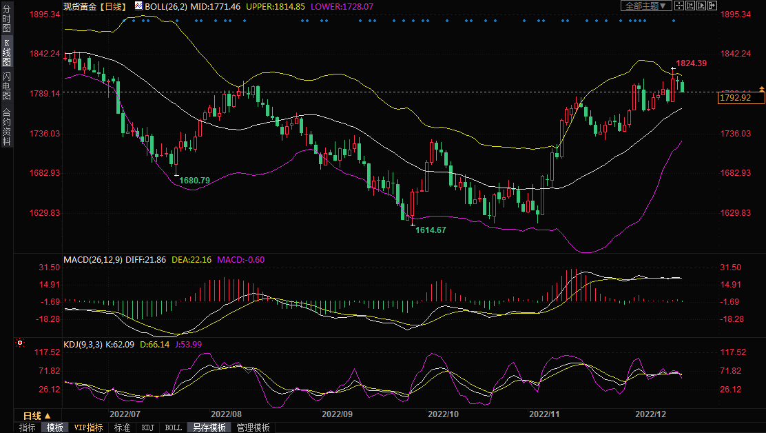 整体来看,美联储利率决议和鲍维尔讲话偏向鹰派,令金价承压,如果本交易日录得阴线,将增加金价的短线见顶信号,投资者需要予以警惕。美元指数暂时也守住了近半年低点106.41附近支撑,如果美元展开反弹也对金价不利。但市场仍憧憬美联储未来进一步放缓加息步伐,美元指数仍比较疲软,美国经济衰退风险较大,地缘局势紧张,金价的回调空间可能受限,中线仍留有进一步震荡走高的机会。